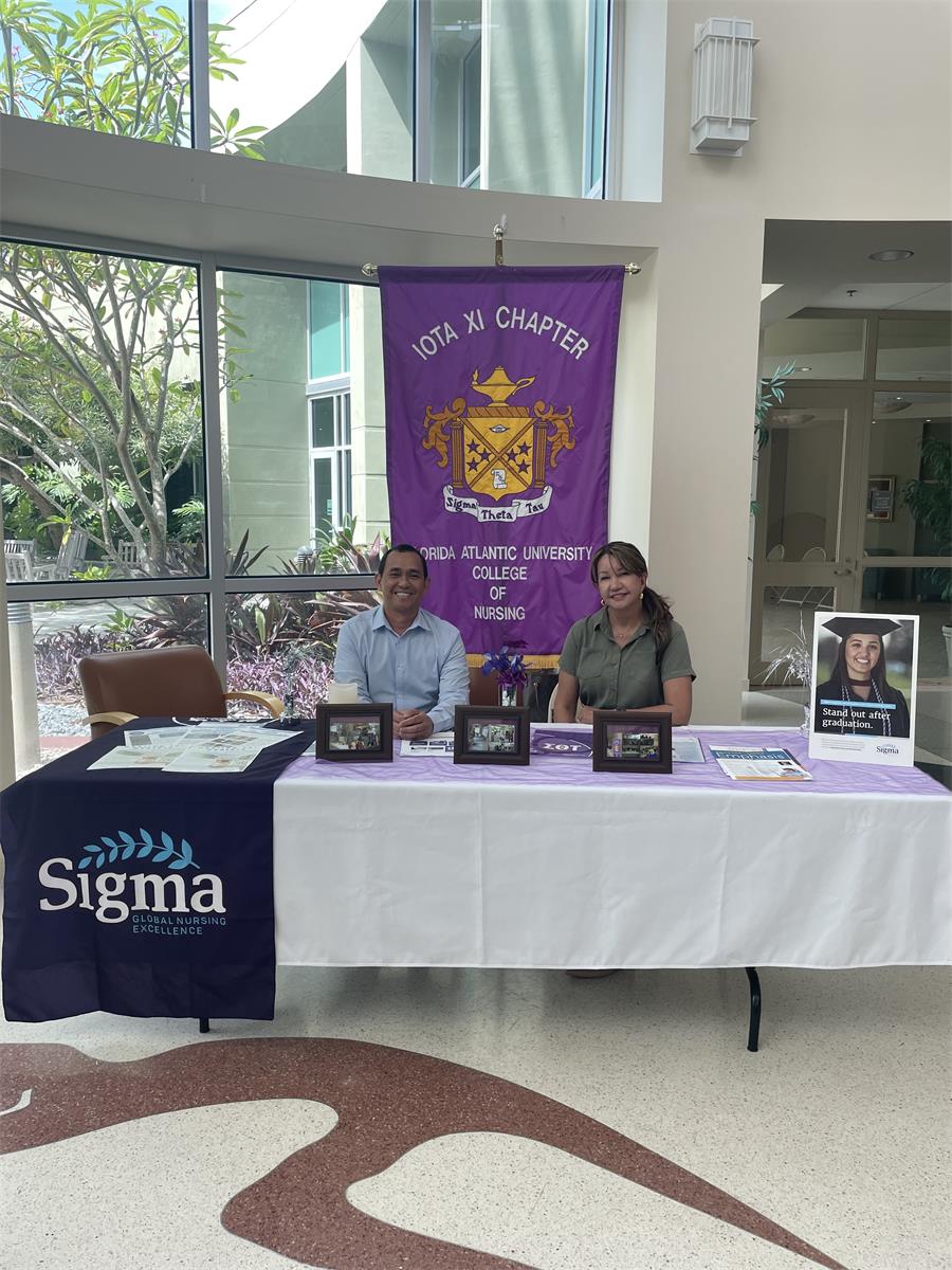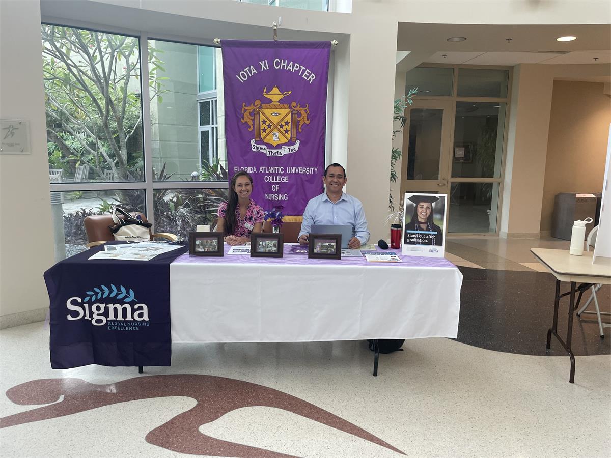 We thank our chapter members who assisted in promoting the Sigma Iota Xi at-Large during the Florida Atlantic University Christine E. Lynn College of Nursing Student Orientation on August 17 and 18, 2023, at the college atrium. This activity aligns with the chapter's goal of increasing student membership in the Sigma International Honor Society of Nursing.