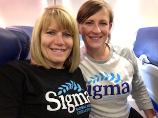 Jenn Kuretski (Secretary) mentored Christine Conti (President) and Jessica Nasrallah (recent BSN graduate) to present their first poster presentation at the Leadership Connection Conference 2018!Linda Casale (Membership Engagement Chair) present per Podium presentation at the Leadership Connection Conference 2018!Jenn Kuretski (Secretary) and Christine Conti (President) on their way back from the Leadership Connection Conference 2018 with *new* Sigma gear!